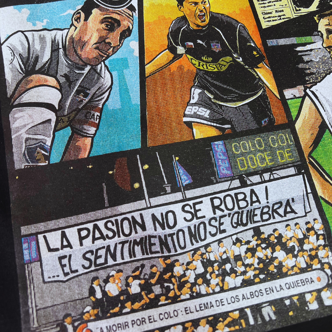 Polera de algodón de la mejor calidad, trabajada en serigrafía de cuatricromía con un diseño exclusivo de Albomania.cl.